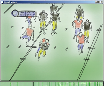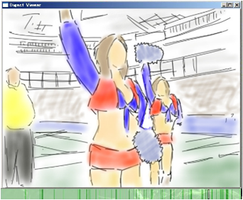 さらに,この視聴者に基づく動画のダイジェスト生成の面白い点は,視聴者の特性に依存するという点です.当然素晴らしいプレーで盛り上がるのですが,例えば下の図ようにチアガールが登場するシーンも盛り上がったとして抽出されます(著作権の問題があるため,絵に置き換えています).これは,2ちゃんねるの実況チャットに若い男性が多いということにも関係しているように思います.
