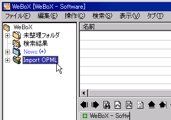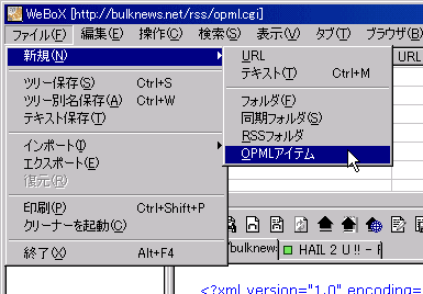 OPMLを見つけたら,そのURLをコピーし,WeBoXのメニューでOPMLアイテムを作成しよう. OPML登録の際には,以下のようなメニューを選択する.